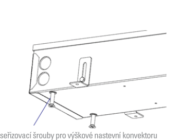 - Instalujte seřizovací šrouby - výškové nastavení seřizovacími šrouby se provádí zevnitř konvektoru.
