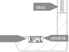 Vyberte správnou polohu konvektoru. Polohu konvektoru konzultujte s odborníkem nebo projektantem: jako hlavní zdroj tepelné energie se konvektor umisťuje výměníkem směrem do místnosti (OBR. 3). V případě použití konvektoru jako doplňkového zdroje tepla nebo jako tepelné clony se konvektor umísťuje výměníkem směrem k oknu (OBR. 4).