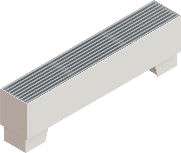 Konvektory se dodávají s hliníkovou podélnou mříží nebo s mříží integrovanou.