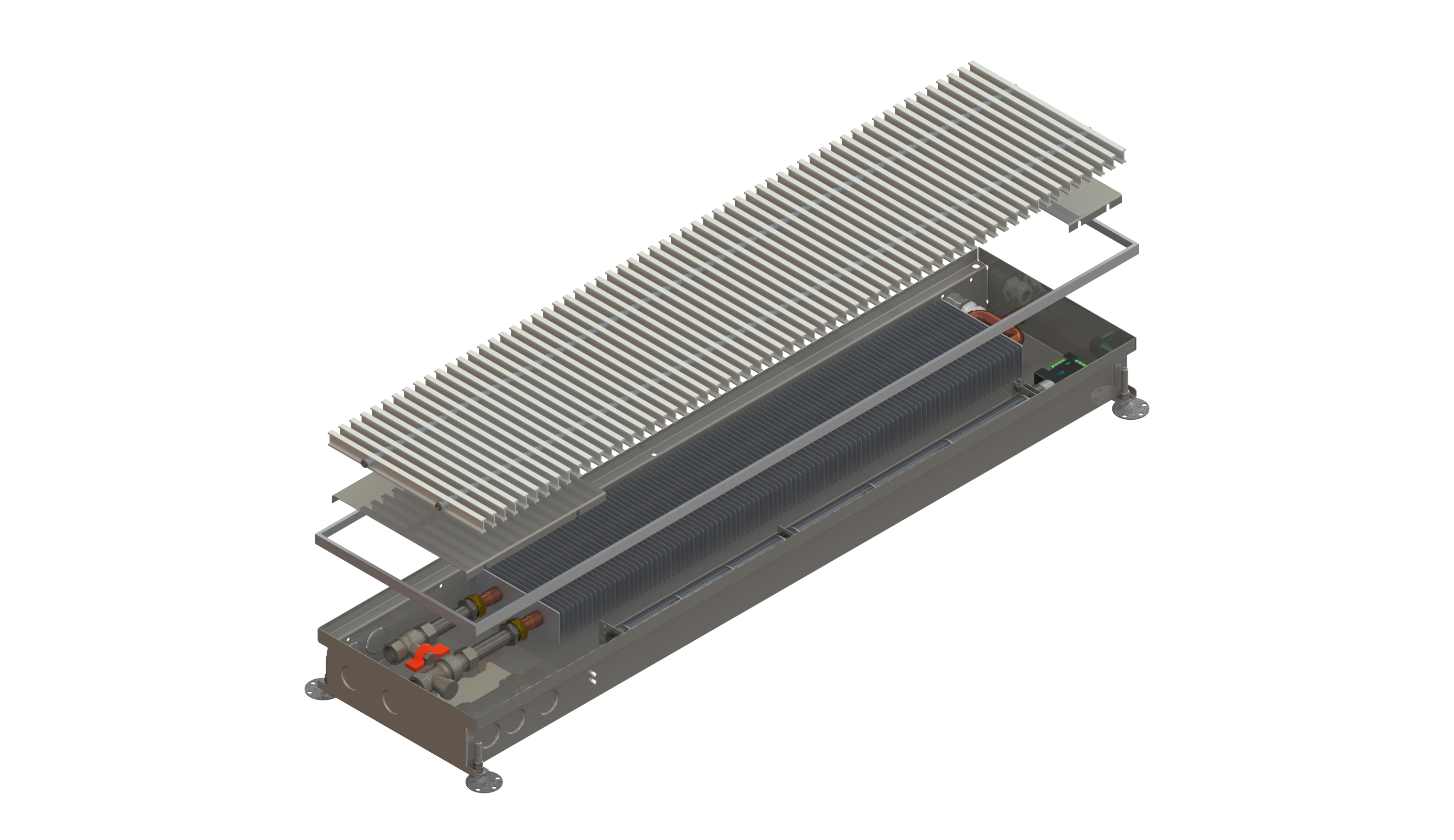 The standard delivery of the convector includes the convector itself, anchoring accessories and a standard frame. All other accessories (cover grille, connection accessories, control elements, etc.) must be ordered and specified separately when ordering.